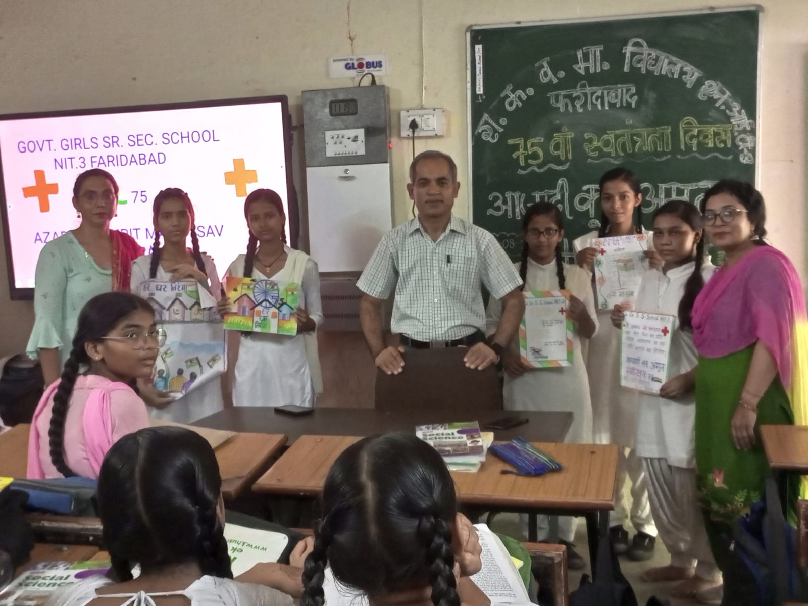 फरीदाबाद. शिक्षा विभाग के आदेशानुसार गवर्नमेंट गर्ल्स सीनियर सेकेंडरी स्कूल एन आई टी तीन फरीदाबाद में प्राचार्य रविंद्र कुमार मनचंदा की अध्यक्षता में जूनियर रेडक्रॉस, गाइड्स और सैंट जॉन एंबुलेंस ब्रिगेड ने हर घर तिरंगा, घर घर तिरंगा अभियान के अंतर्गत भाषण, कविता पाठ और पेंटिंग प्रतियोगिता आयोजित की। विद्यालय की जूनियर रेडक्रॉस और सैंट जॉन एंबुलेंस ब्रिगेड प्रभारी प्राचार्य रविंद्र कुमार मनचंदा ने कहा कि प्रधानमंत्री नरेंद्र मोदी द्वारा घोषित किया गया अभियान है। इसका शुभारम्भ करने के पीछे उद्देश्य सभी में झंडे के प्रति सम्मान और जुड़ाव को बढ़ाना है। हम इस वर्ष 75वां ‘स्वतंत्रता दिवस मना रहें हैं। इस अवसर को मनाने के लिए अमृत महोत्सव की शुरुआत की गयी है। ये क्षण भारत के सभी नागरिकों के लिए बहुत ही विशेष है। इसीलिए हमारे देश के यशस्वी प्रधानमंत्री श्री नरेंद्र मोदी जी ने देश के सभी नागरिकों को स्वतंत्रता का आनंद मनाने के लिए ‘हर घर तिरंगा’ अभियान में सम्मिलित होने का आग्रह किया है, प्राचार्य मनचंदा ने छात्राओं को बताया कि हमारे देश भारत का तिरंगा झंडा राष्ट्रीय ध्वज है। इसमें तीन रंग हैं और साथ में अशोक चक्र है। तीन रंगों में केसरिया, सफेद और हरा रंग है और इसके मध्य में नीले रंग से बना अशोक चक्र है। इस वर्ष देश की स्वतंत्रता की 75वीं वर्षगाँठ पर अमृत महोत्सव का आयोजन किया जा रहा है। इस अवसर पर देश के प्रधानमंत्री श्री नरेन्द्र मोदी ने सभी नागरिकों को अपने घरों पर 13 से 15 अगस्त 2022 राष्ट्रीय ध्वज फहराने की अपील की है। हर घर तिरंगा अभियान से देश के नागरिकों में देशभक्ति व ध्वजा के प्रति सम्मान व जुड़ाव में वृद्धि होगी। प्राध्यापिका शीतल और कविता ने कहा कि 22 जुलाई 1947 को पहली बार तिरंगा झंडा को राष्ट्रीय ध्वज के रूप में अपनाया गया था। छात्रा अंजली ने बताया कि हर घर तिरंगा घर घर तिरंगा अभियान के अंतर्गत जनभागीदारी के साथ 13 से 15 अगस्त के बीच 20 करोड़ से भी अधिक लोग अपने घरों में झंडे फहराएंगे। ये सरकारी और निजी प्रतिष्ठानों पर भी लागू होगा। इसके लिए सरकार द्वारा नोडल अधिकारीयों की नियुक्ति भी की जा चुकी है। प्राचार्य रविंद्र कुमार मनचंदा ने भाषण, कविता पाठ और पेंटिंग प्रतियोगिता में प्रथम रहने वाली छात्राओं अंजली, पायल और कनक का अभिनंदन किया तथा कार्यक्रम कॉर्डिनेटर प्राध्यापिका मोनिका, शीतल और हिंदी प्राध्यापिका कविता एवम अन्य सभी प्रतिभागिता कर रही छात्राओं का स्वागत किया।
