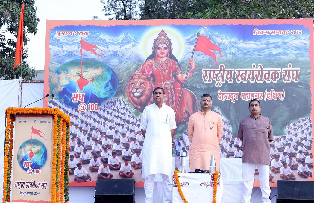 राष्ट्रीय स्वयं सेवक संघ “महानगर दक्षिण” देहरादून ने संघ शताब्दी वर्ष के उपलक्ष्य में एस.जी.आर.आर. (पीजी) कॉलेज में “महानगर एकत्रीकरण” का आयोजन किया, जिसमें 6 हजार से ज्यादा स्वयंसेवकों ने हिस्सा लिया। कार्यक्रम में प्रांत प्रचारक डॉ शैलेंद्र जी ने संघ शताब्दी वर्ष की आगामी योजना पर चर्चा की एवं पंच परिवर्तन (कुटुंभ प्रबोधन, नागरिक कर्तव्य,पर्यावरण संरक्षण, सामाजिक समरसता एवं स्वदेशी) विषय पर विस्तृत जानकारी दी।एकत्रीकरण में महानगर दक्षिण में चल रही समस्त शाखाओं के स्वयं सेवकों ने प्रतिभाग किया। कार्यक्रम का संचालन महानगर कार्यवाह सतेंद्र पंवार ने किया। कार्यक्रम में कैलाश मैलाना, अनिल डोरा, धनंजय, डॉ नरेंद्र, अनिल नंदा, रविन्द्र चौहान, अरुण शर्मा, शंकर आनंद, राजेंद्र पंत, सुधीर, नीरज मित्तल, आशीष ओबेरॉय, मनोहर एवं समस्त स्वयं सेवक ने प्रतिभाग किया।