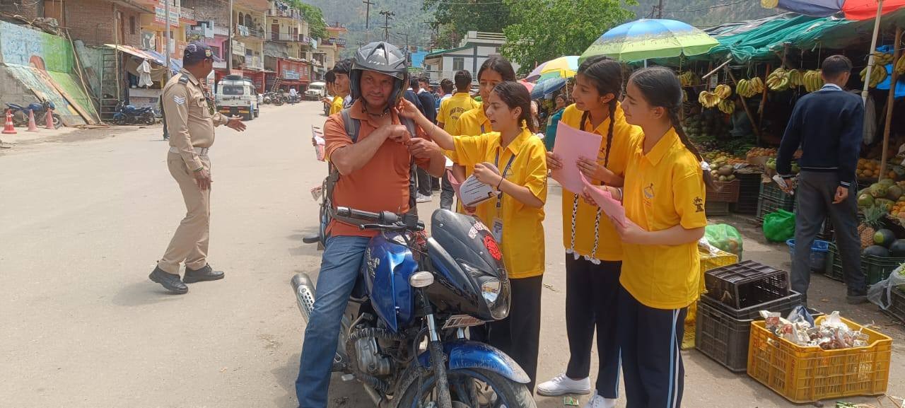 स्कूली छात्र-छात्राओं ने राहगीरों को पढाया सडक सुरक्षा का पाठ