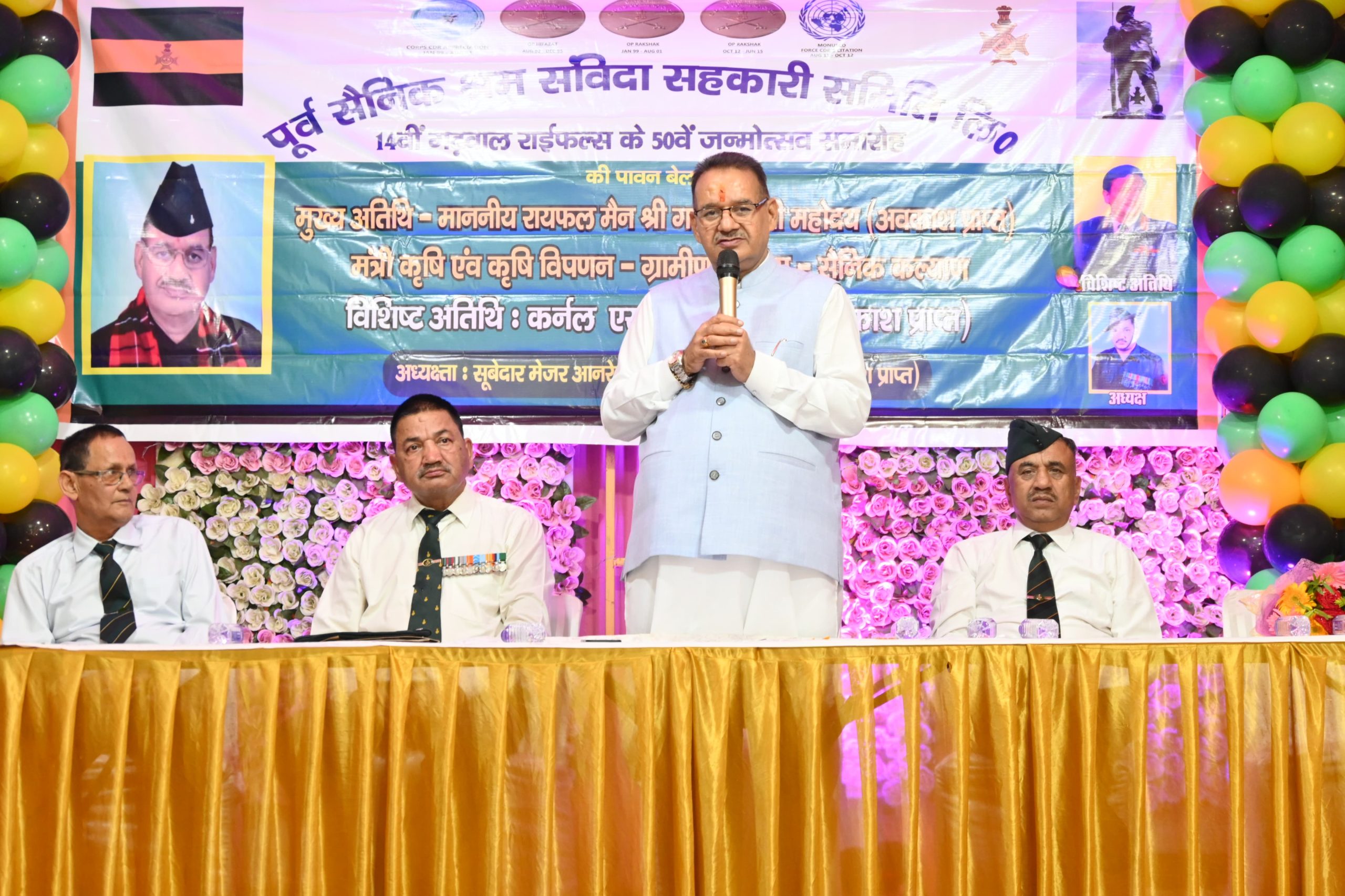 अपने संबोधन में सैनिक कल्याण मंत्री गणेश जोशी ने सभी पूर्व सैनिकों को स्थापना दिवस की शुभकामनाएँ दीं। उन्होंने भावुक होकर कहा कि उन्हें भी 14वीं बटालियन गढ़वाल राइफल्स में सेवा करने का अवसर प्राप्त हुआ था और आज वे जहाँ हैं, उसके पीछे उनकी सैनिक पृष्ठभूमि की अहम भूमिका है। उन्होंने कहा कि गढ़वाल राइफल्स वीरता की मिसाल है और उत्तराखंड वीरों व राष्ट्रभक्तों की भूमि है। सैनिक कल्याण मंत्री जोशी ने कहा कि देश की सेना में लगभग 17.5 प्रतिशत सैनिक उत्तराखंड जैसे छोटे राज्य से आते हैं। प्रधानमंत्री नरेंद्र मोदी द्वारा सैनिकों के प्रति विशेष लगाव का उल्लेख करते हुए उन्होंने कहा कि वर्षों से लंबित वन रैंक वन पेंशन की मांग को मोदी सरकार ने पूरा किया। राज्य सरकार द्वारा भी पूर्व सैनिकों की समस्याओं के निराकरण के लिए जनपद स्तर पर नोडल अधिकारी नियुक्त किए गए हैं और शहीदों के परिवार से एक सदस्य को नौकरी देने का प्रावधान किया गया है। उन्होंने कहा कि प्रधानमंत्री नरेन्द्र मोदी की परिकल्पना के अनुरूप देहरादून में भव्य सैन्यधाम का निर्माण प्रगति पर है, जिसका शीघ्र ही लोकार्पण किया जाएगा। इस दौरान सैनिक कल्याण मंत्री गणेश जोशी ने संगठन के पूर्व अध्यक्ष रहे स्वर्गीय कैप्टन धनीराम नैनवाल को भी स्मरण कर श्रद्धासुमन अर्पित की। उन्होंने कहा कि यह सैन्यधाम उत्तराखण्ड की वीरभूमि और हमारे शहीदों के पराक्रम का प्रतीक बनेगा। मंत्री जोशी ने कहा कि राज्य सरकार ने द्वितीय विश्व युद्ध के पूर्व सैनिकों एवं उनकी आश्रित विधवाओं की पेंशन को बढ़ाकर 10 हजार रुपये कर दिया है। उन्होंने कहा कि वर्तमान में लगभग 650 पूर्व सैनिकों एवं विधवाओं को इस पेंशन का लाभ मिल रहा है। उन्होंने कहा कि सैनिकों के सम्मान और हितों की रक्षा करना हमारी सर्वोच्च प्राथमिकता है।